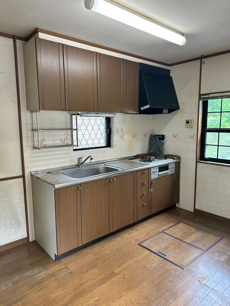 キッチン交換、照明器具交換、天井・壁クロス張替え、フローリング張替え